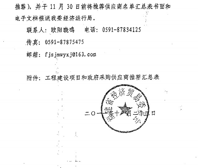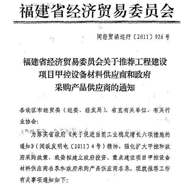 福建省经济贸易委员会关于推荐工程建设项目甲控设备材料供应商和政府采购产品供应商的通知