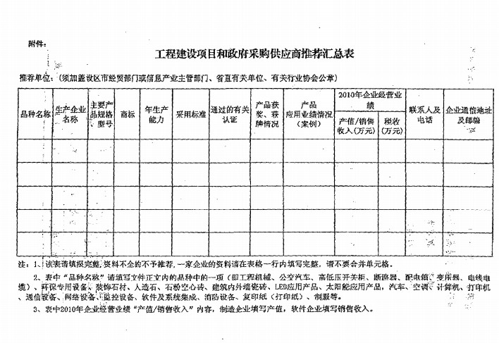 福建省经济贸易委员会关于推荐工程建设项目甲控设备材料供应商和政府采购产品供应商的通知