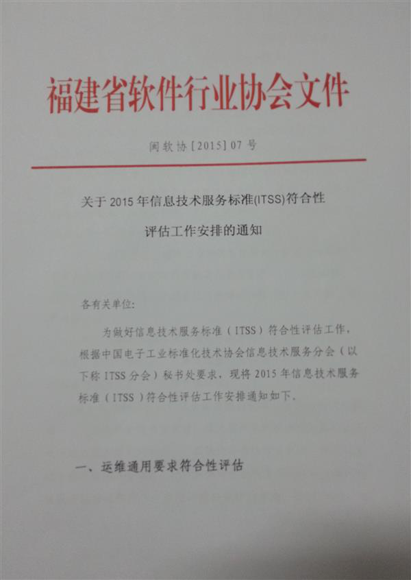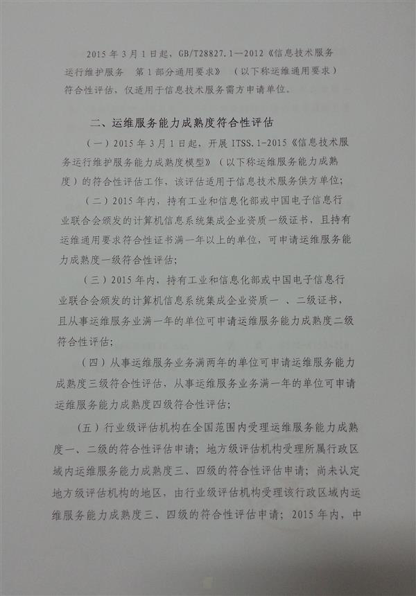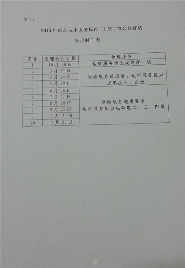 关于2015年信息技术服务标准(ITSS)符合性评估工作安排的通知
