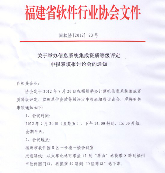 关于举办信息系统集成资质等级评定申报表填报讨论会的通知